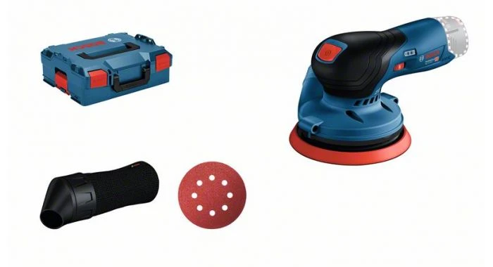 De GEX 12V-125 Professional is ook voorzien van een stofzak, toerentalinstelling, accustatusaanduiding, een borstelloze motor en een schuurzool van 125 mm met klithechting voor het bevestigen van schuurpapier.