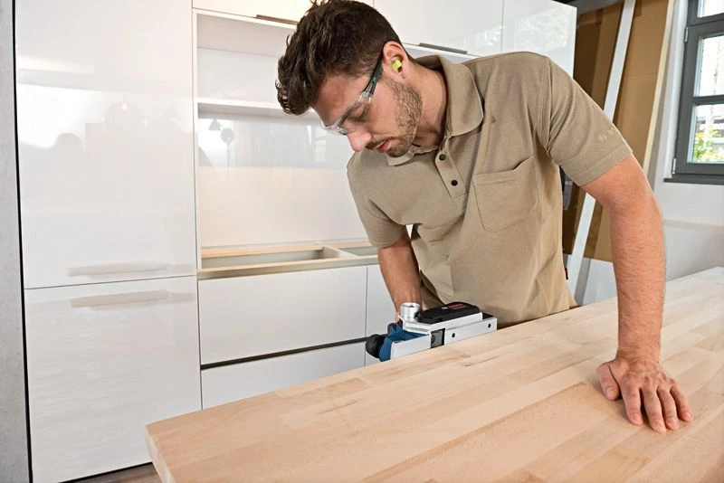 De Bosch GHO 26-82 is een klein, handig toestel met krachtige motor van 710 W. Ideaal voor aanpassingswerkzaamheden ter plaatse.
