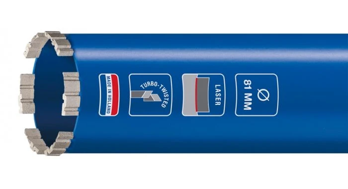 Diamantboor laser master voor gebruik met waterkoeling in beton en harde steensoorten