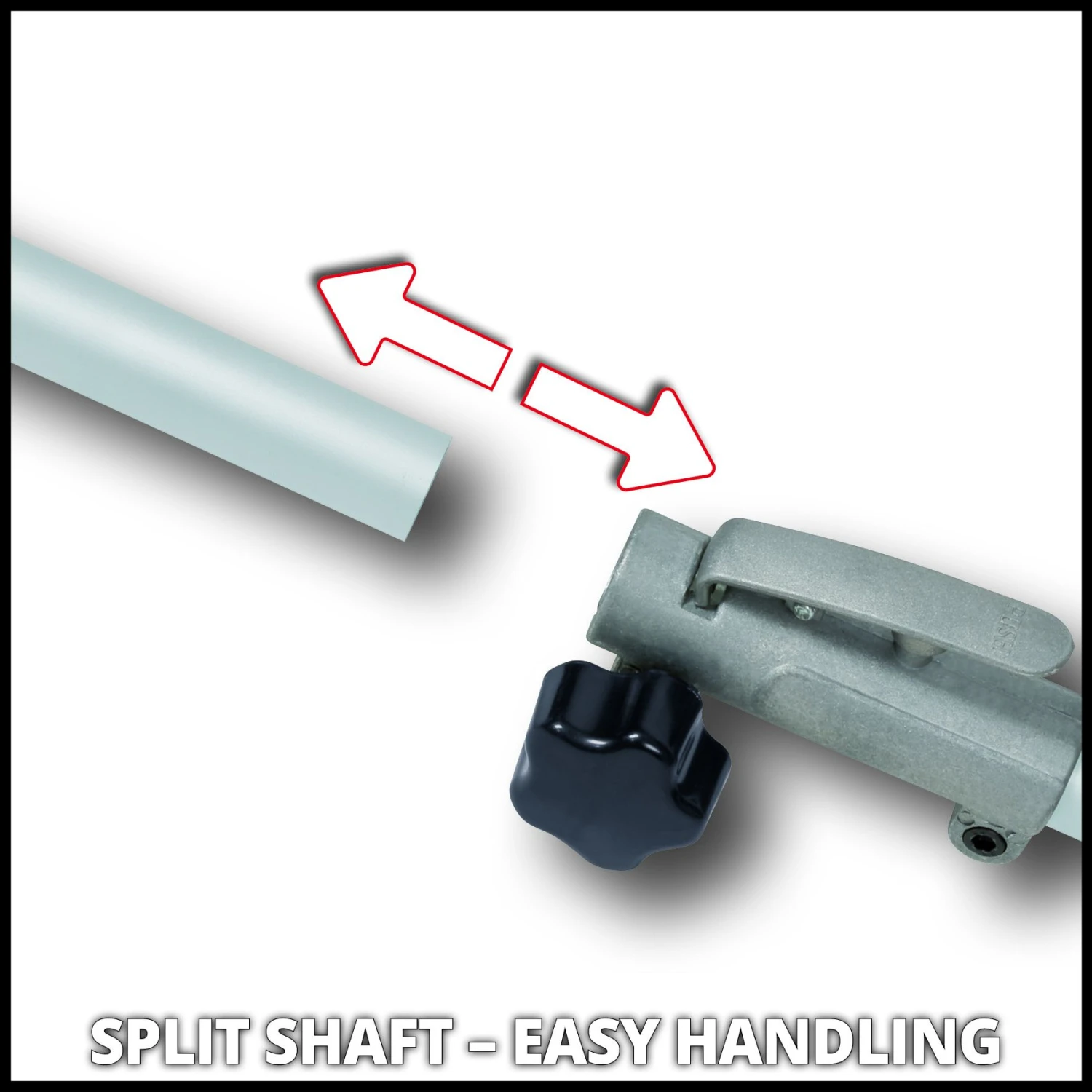Split shaft (geleidesteel in twee delen) voor gemakkelijk transport en ruimtebesparend opbergen