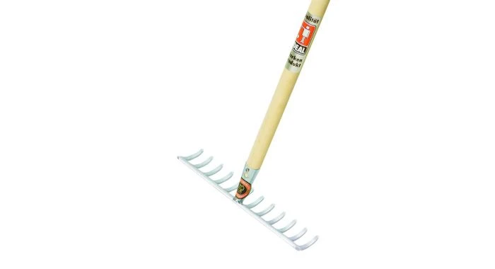 Hark met gebogen tanden. Aantal tanden zijn afhankelijk van de maat. Ideal Hark Gebogen 16-T Verz. E170