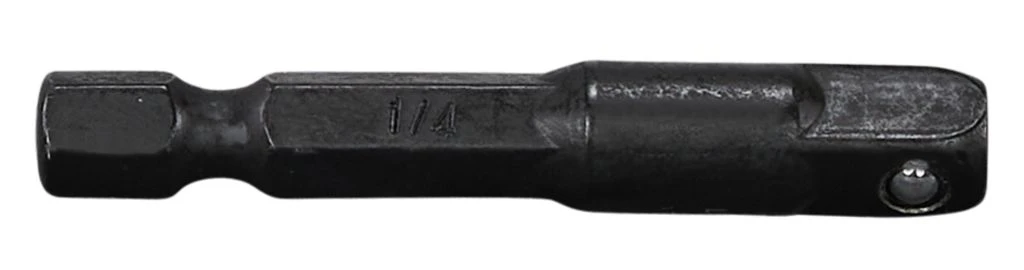 Krachtdopadapter voor 1/4″ zeskant vorm E schroefbitopname naar 1/4″ vierkant krachtdopafgifte. Inbegrepen in krachtdoppenset E-12289.