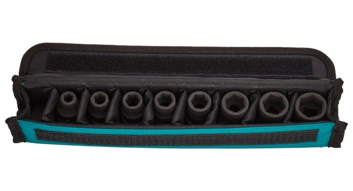 8- delige 1/2″ krachtdoppenset in etui. De set is voorzien van 8, 10, 12, 13, 14, 17, 19 en 21 mm korte krachtdoppen. In de etui is teven één plaats vrij om een extra dop in te plaatsen.
