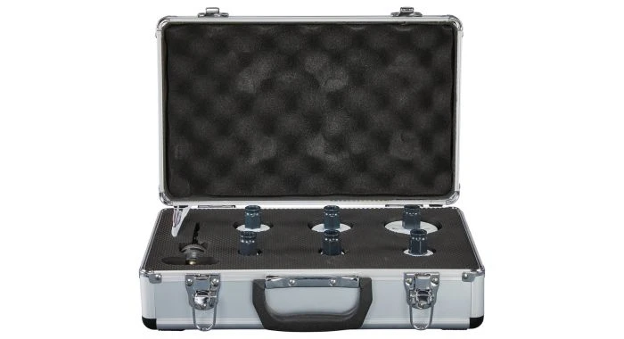 7-delige gatzaagset BiM bestaande uit gatzagen in diameters 19, 22, 29, 38, 44, 57 en een Ezychange snelwissel adapter met centreerboor.