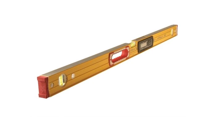 Lichtmetaal rechthoekprofiel met twee gefreesde meetvlakken. Een horizontale en twee vericale libellen.